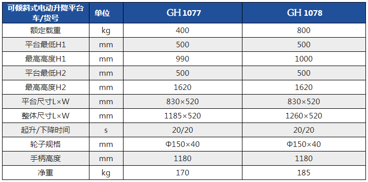 冠航牌可傾斜式電動(dòng)升降平臺(tái)車